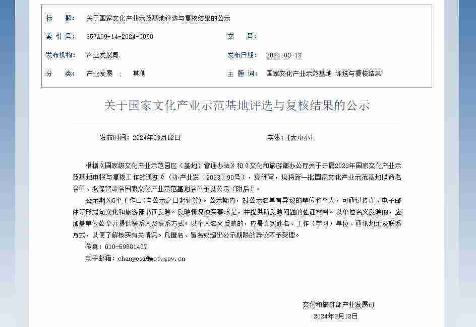 新一批國(guó)家文化產(chǎn)業(yè)示范基地公示,,一競(jìng)技成功入圍